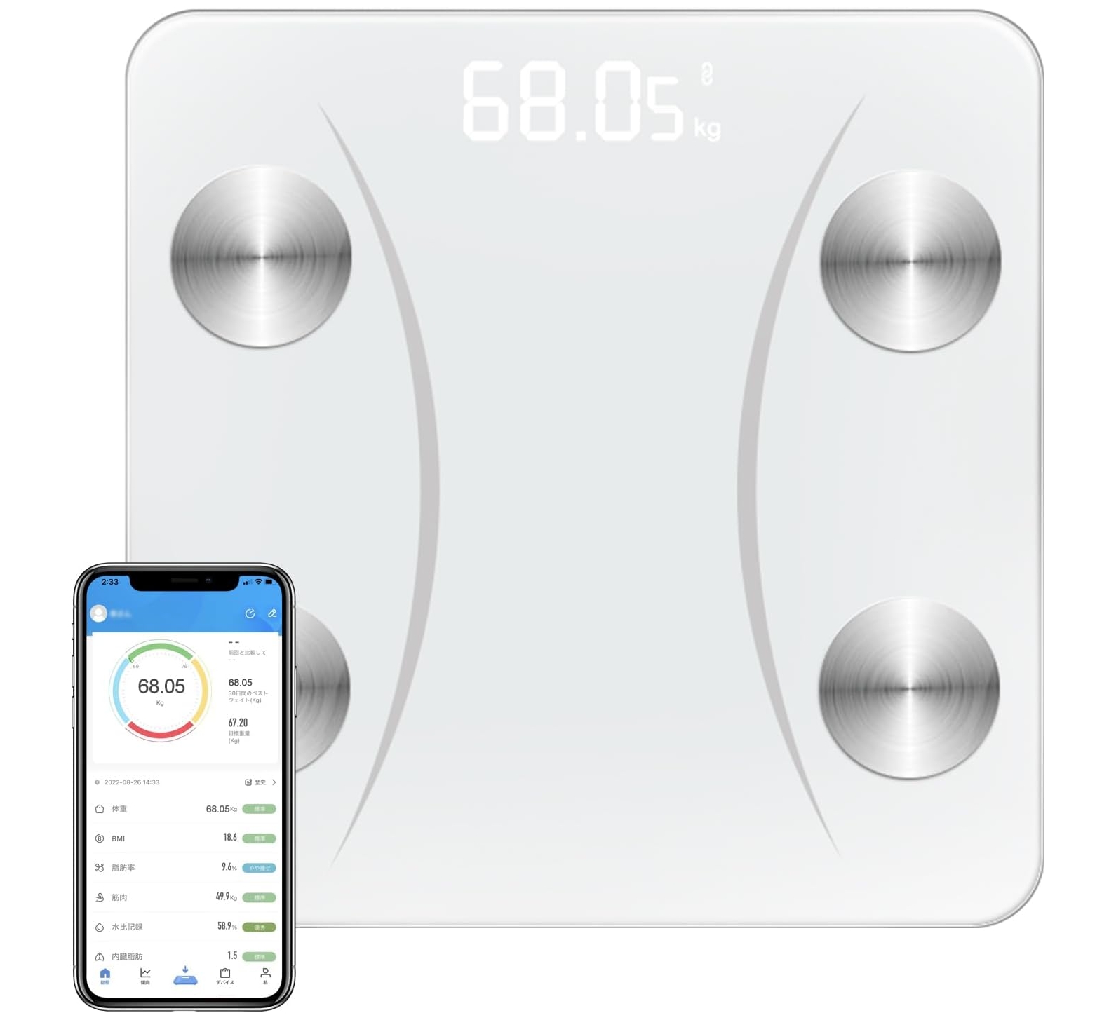 それを写真のような今風のデザインと、綺麗な液晶表示とを合わせ持ち、さらにはスマホ連携機能なんかもついちゃってるものに買い替えてみた、というわけ。当たり前のように、体脂肪率や骨密度、水分量なんかも、ついでに測ってくれちゃう。すごいぜ。
